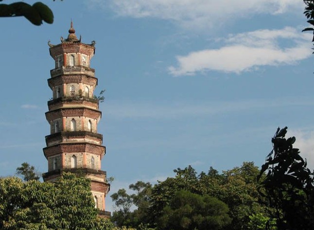 塔外為7層,內13層,磚木結構,為樓閣式佛塔。明嘉靖四十三年(1564年)塔毀,萬歷初年改建亭,四十六年(1618年)復建塔。光緒初年,雷破塔頂一角,長了一株榕樹,丘逢甲詩云:“行人欲問朝云墓,版權所有山東聊城聊之旅國際旅行社有限公司,轉載必究!看取亭亭塔頂榕。”建國后修復,增建了步級扶梯。山上綠樹成蔭,亭廊排映,景色秀麗,登塔眺望,惠州全景盡收眼底。