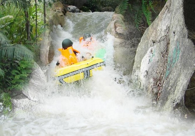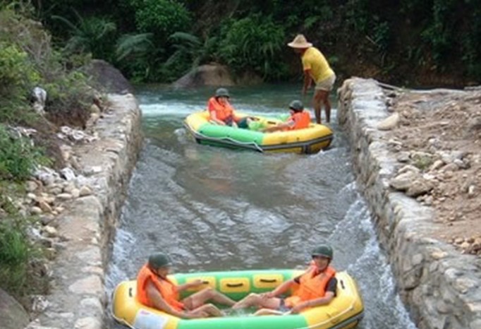 龍?zhí)秿{漂流位于臺(tái)山第二高山—北峰山南麓。龍?zhí)秿{漂流河全程長(zhǎng)約5公里,漂流時(shí)間約99分鐘,河道崎嶇彎曲、高低起伏,漂流河中奇形怪狀的大石組成一道極有觀(guān)賞性的石林景觀(guān)。最大落差30多米的斜坡令你驚心動(dòng)魄、尖叫聲不停,體會(huì)刺激漂流的極大樂(lè)趣,漂流過(guò)程中讓你領(lǐng)略大自然的風(fēng)采,植被茂盛。在此連綿起伏的山巒中間,穿流著從巖縫中滲出會(huì)聚的泉水,集泉成溪,在山峽中穿石繞壁,川流不息。由雙人充氣漂流艇,沿著青山碧水、無(wú)限風(fēng)光中漂流直下。另你無(wú)限幻想“飛流直下三千尺”,其中的奧妙感受。