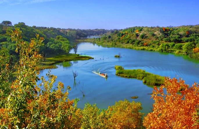 大青溝素有“沙漠綠洲”、“沙海明珠”和“天然野生動植物基因庫”等諸多美譽,總面積8183公頃。大青溝溝深50—100米,寬300—400米,版權所有山東聊城聊之旅國際旅行社有限公司,轉載必究!由北向南綿延20余公里 ,溝內千眼泉水,終年流淌。溝底及兩側古木參天,喬灌草叢生茂密,生存著709種原始稀有植物樹種,屬內蒙、東北、華北等三個植物區系,被聯合國教科文組織列為世界科學考察項目,先后有57個國家和地區的專家、學者來此進行學術考察和研究。由于具有保存完整的森林生態系統,多種動物和鳥類在這里棲息繁衍。目前發現的野生動物有野豬、狍子、狼、梅花鹿、狐貍等。