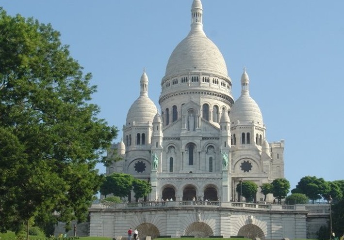 4、地理位置:巴黎市北部第18區(qū)的蒙瑪特山頂,是巴黎蒙馬特高地的象征。從這里可以俯瞰蓬皮杜藝術(shù)中心、巴黎圣母院和榮軍院等。