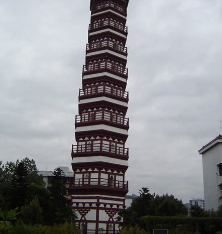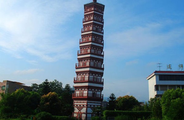 該塔為樓閣式磚木塔,外墻為土紅色,塔高45.5米,建筑是斗拱結(jié)構(gòu),平面六角九層、塔內(nèi)空心,有梯道可登,可旋登至塔頂,鳥瞰連江景色和連州全貌。塔的每層用磚砌出角柱、椽枋、斗拱、平座和檐面,其中第一層斗拱中用人字形拱托鴛鴦交手拱。塔頂有一個用生鐵鑄造的古塔頂蓋。當(dāng)年建塔時,因塔頂蓋太重,無法提升上去,只好擱置在塔的旁邊。因此,古有“惠州古塔無影,連州古塔無頂”之說。站在塔旁,明顯感覺到這座塔的中軸線不是垂直的,而是向西傾斜1米多。原來此塔的塔基是建在一座小石山的山尖上,歷經(jīng)千年的風(fēng)吹雨打和地殼運(yùn)動,塔基發(fā)生了微小的變化,東高西低,造成塔向西傾斜。1985年國家文物局拔出???,對慧光塔進(jìn)行維修,版權(quán)所有山東聊城聊之旅國際旅行社有限公司,轉(zhuǎn)載必究!加固了塔基,傾斜不再繼續(xù)發(fā)展。