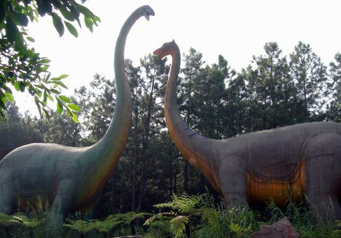 仿真恐龍從外型比例、肌肉張力、皮膚紋理到聲音動作,都是按照科學家們推斷出來的恐龍樣子制作的,其仿真程度達到90%。除了能發(fā)出令人驚悚的叫聲,它們的脖子、頭以及嘴巴還能自如地活動。這是因為恐龍的肚子跟頭部安裝了大大小小的電機跟減速器。采用了大量鋼材作為恐龍的骨架,并用鋼材固定在地上。谷內(nèi)擁有數(shù)十條世上屈指可數(shù)的能喊會動的仿真恐龍。