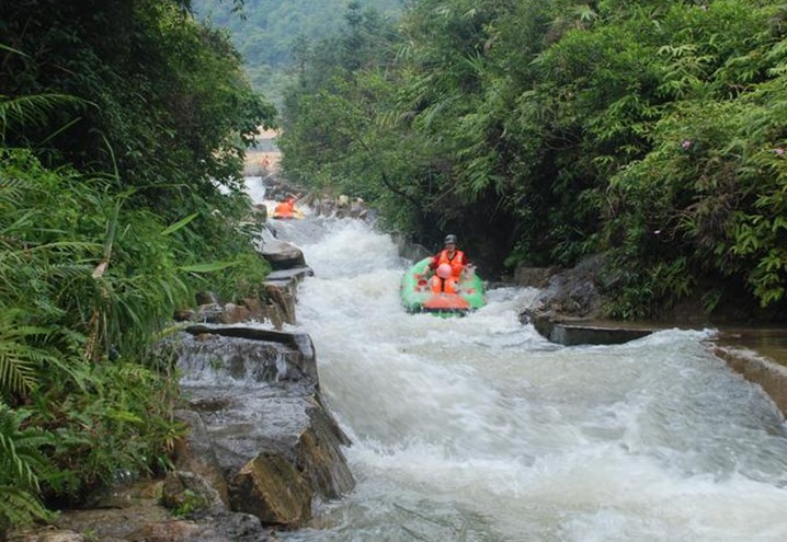 清遠黃龍峽漂流河道兩岸群山奇石綿延,植被蔥翠,郁郁蔥蔥,游客穿石繞壁、凌波逐浪之間亦免除陽光暴曬之苦,全程舒適寫意,充分領略大自然生態之壯美。清遠黃龍峽漂流全程約1.5小時,每日接待量約8000人次,游客可乘景點中巴或旅游大巴直接到達漂流起點,大大縮短了等待時間。它是全國唯一的雙S回旋彎賽道及多個精心賽道設計讓游人真正體驗到挑戰自我的樂趣,而整個河道經年初精心整葺,煥然一新,水質大幅提升之余亦做足安全保障。