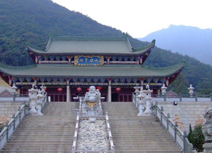 俗稱“半嶺庵”。位于廣東省汕尾市海豐縣北部蓮花山森林管理區(qū),距海豐縣城13公里,在蓮花與銀瓶兩山環(huán)抱的雞心山上。始建于明崇禎六年1633年),為高僧印真和尚向合邑縉紳商戶募款所創(chuàng)建,原址在寺對面5里之蓮花山下,因破曉時(shí)慈任常聞雞心山有公雞啼鳴,認(rèn)為靈瑞而遷于今址。寺后群峰疊起,翠秀異常。沿山門踏階而上,徑旁松杉交翠,郁郁蔥蔥,涼風(fēng)習(xí)習(xí)。周圍有“如來盤石”、“獼猴奇石”、“犀牛望月”、“玉龍噴須”、“三井回音” 等自然景觀;并有開山祖師印真和尚墓塔、明末天然奇石彌勒佛像、東洋古銀幣等文物古跡;還有生長于山上500多年的長葉竹柏和6.55米仙茶古樹、土沉香、巴戟天等國家保護(hù)的珍稀樹種。