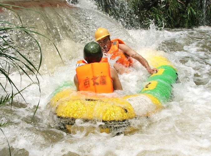 立于灘頭,沿江兩岸有大瑤山隧道、十里畫廊、龜山、蛙石等景點(diǎn),有十多個(gè)回旋處。在漂流過程中,可盡享原始森林峽谷漂流之刺激,更可欣賞融山之雄、水之秀、林之幽、花之美、石之奇、瀑之壯、鳥之鳴、魚之樂于一身的原始森林山谷風(fēng)光。