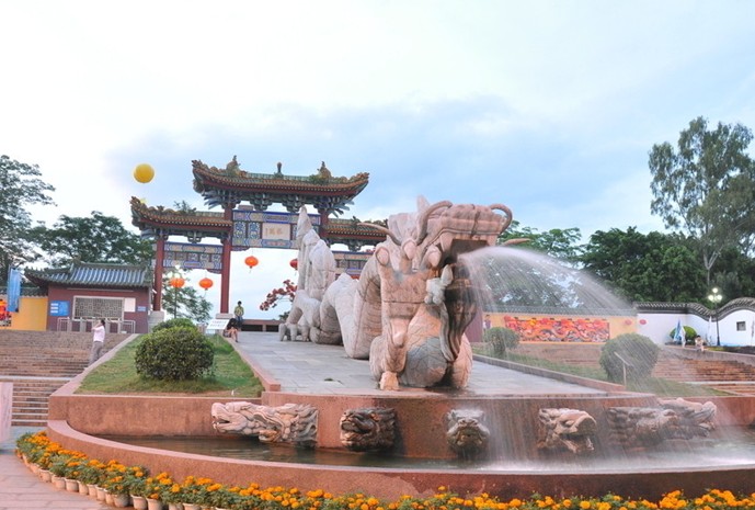 原龍崗鎮(zhèn)人民政府斥巨資,壘土萬斛,砌石千丈,雕梁畫棟,玉階朱廊,終于在椰風竹影中建成這傳奇的龍之家園。噴珠濺玉的石雕巨龍和泥金重彩的牌樓,在龍園大門組成第一道攝人心魄的風景線。園中美景目不暇接,雄渾壯觀的九龍透雕,峭拔古拙的建園碑和攤神柱。雍容典雅的五龍亭和琉璃牌坊,霞簇虹擁的回龍橋,巍峨莊嚴的龍王宮,佛語梵音的觀音閣,羅漢塔,長達五百米的東方巨龍為中心的龍文化廣場。河旁綠樹成蔭,橋下美人蕉似火,園中椰樹成蔭,芳草茵茵,亭閣走廊,悠揚古鐘,小巧桃園,蔥郁龍眼,一句話,美不勝收....每一處建筑,雕塑和園林,或氣勢磅礴,或構(gòu)想奇妙,或獨具匠心,承傳著數(shù)千年龍文化對中國建筑、藝術(shù)、宗教、民俗的深遠影響。一登龍園氣勢恢弘的龍門,覽九龍壁,閱建園碑,游五龍亭,過回龍橋,穿如意洲,逛龍豐街,登羅漢塔,在梵音裊裊的觀音閣龍王宮焚香禮佛,可茗居品一壺烏龍茶,游泳場作一番蛟龍戲水,相思林歌一曲《龍的傳人》,或者去龍頭舞臺看俊男靚女演昨天的故事今天的傳奇。在龍園的花香綠意中,這時只覺一身凡塵盡洗,不經(jīng)意間你就明白了:龍,對中國的建筑藝術(shù)、文化、宗教、民俗、政治的影響無處不在。