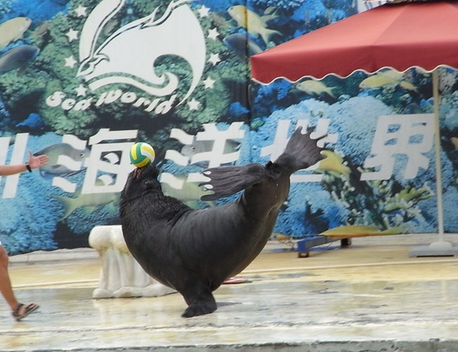 海洋劇場(chǎng):設(shè)有近3000個(gè)座位,現(xiàn)有6只海豚、8只海獅、6只海豹。每天三輪、近1個(gè)小時(shí)的海洋劇場(chǎng)大表演,俄羅斯勇士帶來極限高空跳水特技,烏克蘭美少女演繹激情水上芭蕾,國(guó)際小丑帶來爆笑嬉水節(jié)目,還有海洋動(dòng)物明星海豚、海獅、海豹的精彩表演,場(chǎng)場(chǎng)表演贏得觀眾近100次歡呼喝彩和興奮的掌聲!