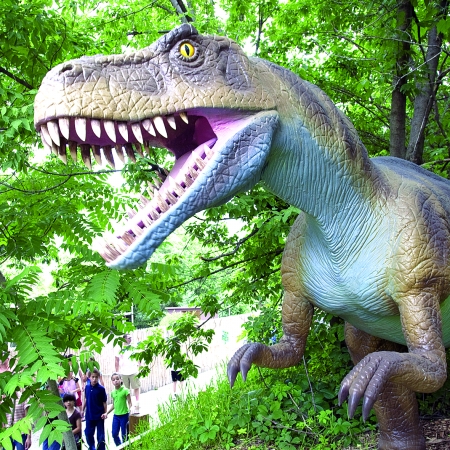 金鷺公司在鴕鳥養殖的基礎上,利用鴕鳥群這一獨特的景觀和鴕鳥較高的觀賞價值,開發了生態旅游業,1999年12月被河南省旅游局正式批準為“金鷺鴕鳥游樂園”旅游觀光景點, 2000年4月正式對游客開放。聊城旅游網版權所有聊城聊之旅國際旅行社有限公司,轉載必究!走出了一條“以鴕鳥養殖帶動旅游開發,以旅游開發帶動產品銷售”的新路子,園區先后投資興建了騎鳥場、踩蛋場、太空球、垂釣中心、滑草場、空中索道、人工湖、水上樂園、攀巖、彩彈射擊、峽谷漂流等200多個特色旅游娛樂項目。金鷺鴕鳥游樂園和北美最知名的恐龍展覽公司加拿大恐龍皇有限責任公司投資500萬美元興建了我國最大的恐龍科普基地。恐龍科普基地占地百余畝,位于鴕鳥園內, 40多只恐龍是根據已發現的恐龍化石,按原始大小仿真制造。這些形態各異、或兇猛或溫柔的仿真恐龍會動會叫會呼吸,皮膚柔軟,肢體靈活,如同復活一般,栩栩如生地潛伏在鴕鳥園茂盛的樹叢中和水塘內,有的張牙舞爪,有的低沉吼叫,有的正在下蛋,有的噴水嬉戲。妙趣橫生的恐龍探秘之旅一定會讓您充滿驚奇與收獲,逼真的場景也會帶您穿越時空,夢幻般回到億萬年前的侏羅紀時代。