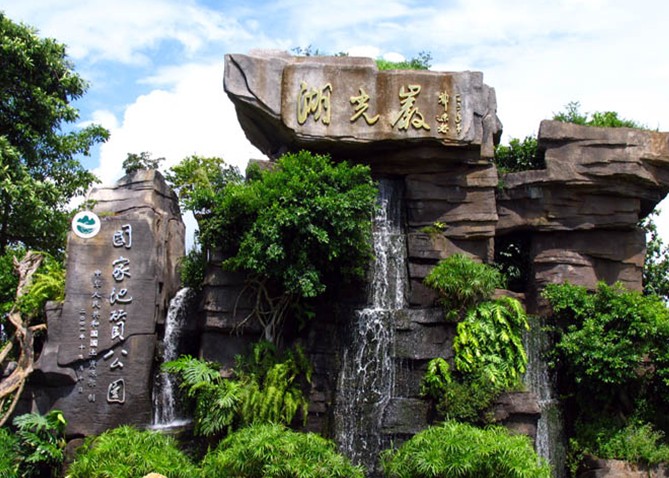 經聯合國地質勘探專家組鑒定,湖光巖是距今16至14萬年間經多次平地火山爆炸深陷而形成的瑪珥湖。湖面積2.3平方公里,湖深446米,其中火山泥沉積物400多米,水深20余米。湖和火山泥含有60多種微量元素,是世界罕見的“天然年鑒”和“自然博物館”。董必武同志曾用十個字對它作了概括:“四山環一湖,湖水明如鏡”。湖光巖的精粹是一汪蘭湛湛的、純凈得有如山泉的湖水。世界上僅有兩個瑪珥湖,湖光巖最早時稱"凈湖"或"鏡湖"。湖光巖的瑪珥湖比德國的瑪珥湖大,是世界上發現的最大瑪珥湖,且保存得非常自然,完整。湖中沒有螞蝗,沒有青蛙和蛇,卻有大量的魚蝦,甚至有巨大的神龜龍魚出沒。長年累月不管落葉塵埃如何侵染湖面,5個小時后湖水自有神奇的自我凈化功能,把雜物消得無影無蹤,湖水清澈,明凈如鏡,湖光巖其美麗的不解之謎一直是大自然中的謎團,吸引著中外科學家考察探研。2004年10月,世界上最為典型的兩個瑪珥湖----湖光巖瑪珥湖與德國艾菲爾地區瑪珥湖簽署了“中德姐妹瑪珥湖合作協議書”,結拜為“姐妹湖”。湖光巖大小共有50多處千姿百態,風景優美的景點,版權所有山東聊城聊之旅國際旅行社有限公司,轉載必究!被譽為“天然氧吧”。它也是國家劃水訓練基地,曾舉辦過2004年世界滑水錦標賽。