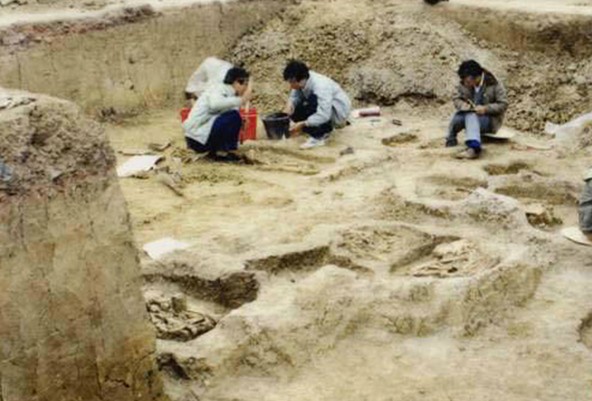 龍一村貝丘遺址在鼎湖區龍一村,離鼎湖山景區2.5公里,于1984年被發現,遺址年代距今約5000年左右,有新石器時代墓葬27處,出土的器物有石鑄、陶器和骨器。陶器造形簡單,有夾沙和泥質二種,有些泥質陶片先施白色陶衣,再給上儲紅色勾連紋圖案,并配有接孔和曲線刻劃紋;骨器中的骨笛是廣東省新石器時代遺址中的首次發現。墓葬都是豎穴土坑墓,葬式以側身屈肢葬為主,還有雙手反捆俯身屈肢葬和蹲踞葬。