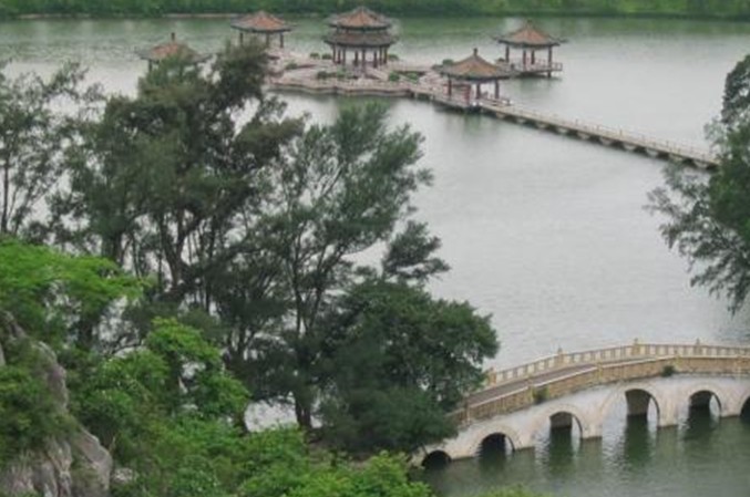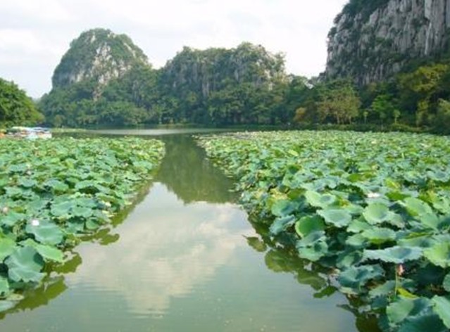 巖東南北三面臨水,溶洞特多。頂峰南面有無底洞,洞口直徑約2米,深邃黝黑,蜿蜒曲折而下,難窮其底。巖西麓有攬勝牌坊、棲云亭、蓬壺徑。徑下有流霞島,又名鐘鼓洞,洞中一穴鐘乳下垂若帳幔,中有一石,相傳是歌仙劉三姐的化身,水滿時,洞中滴水叮當作響,如聽仙樂。其東有含珠洞,版權所有山東聊城聊之旅國際旅行社有限公司,轉載必究!洞內有水,穴名蚊龍窟,穴外有兩石下垂如懸磐,叩之鏗然有聲。