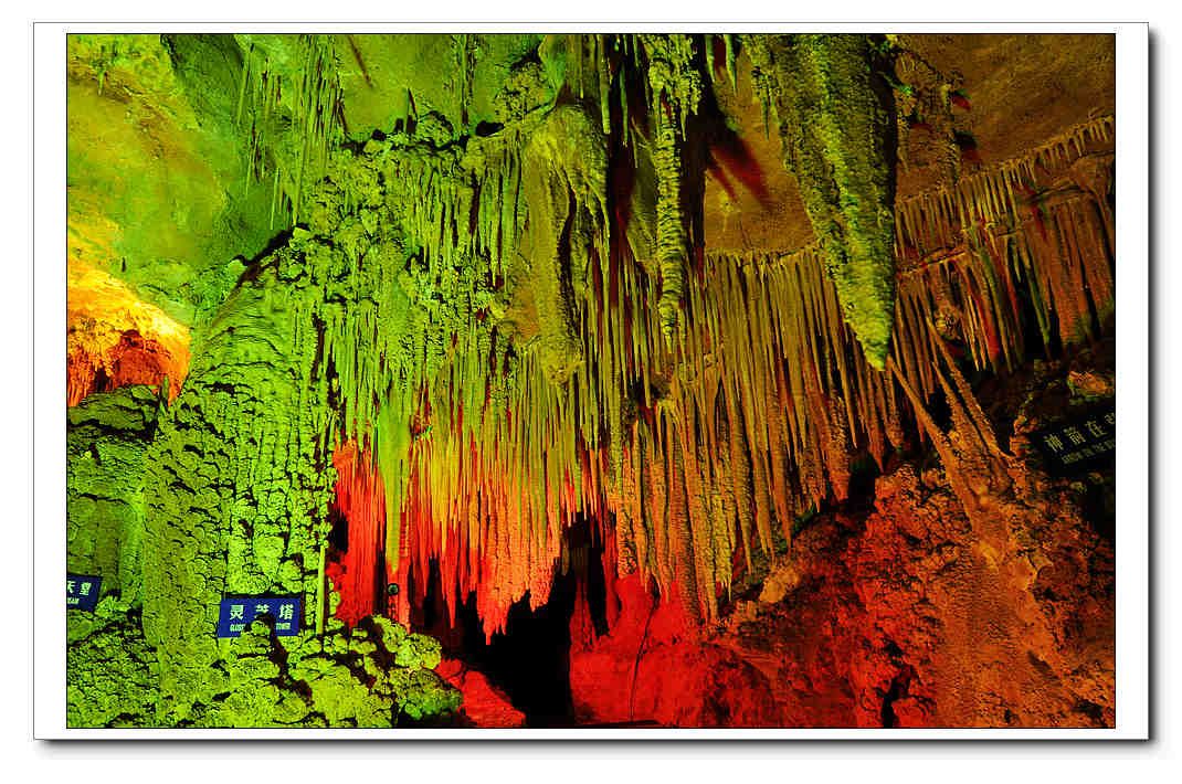洞內石花面積占到了所有化學沉積類型的60%以上,被中科院地質研究所陳詩才教授稱之為“中國最大的石花洞穴”。各種石花以石珊瑚為基座,有針尖狀、球粒狀、葡萄狀、樹叢狀、蘑菇狀、菌塊狀、晶塊狀等,千姿百態、應有盡有。其中大部分仍在生長中,質地純凈、組合精巧、高貴細膩,在五顏六色的彩燈照耀下,仿佛一座正值盛期的天宮花園,美輪美奐。