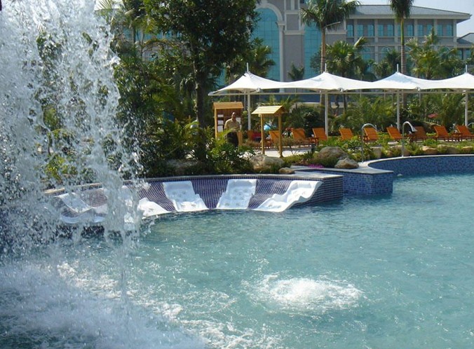 中山天和溫泉娛樂設施:麗晶會娛樂會所內設演繹大廳可同時容納500余人的大型現場歌舞表演,配有專業的燈光、音響設備,天天精彩演出。50余間大小各異的KTV包廂給你帶來至HAIG的娛樂感受。健身房、桑拿、棋牌室、足浴、聊天吧等多種娛樂項目設施一應俱全;為您提供更多選擇讓您得到全身心的放松。天和溫泉度假村總體占地面積達15萬平方米,建筑面積達9.6萬平方米;是由廣東聚龍灣國際酒店管理有限公司連鎖經營管理的一家以國家四星級旅游飯店標準建造的集露天深海溫泉區、溫泉別墅群、聚龍灣假日酒店以及麗晶會娛樂城于一體的高端度假設施集群,服務項目提供包括休閑度假、商務會議、餐飲娛樂、社交旅游等在內的一站式休閑度假生活體驗…… 露天溫泉介紹石岐老酒湯攻效:在溫泉水中不斷加入石岐老酒,酒香怡人,浴后可促進血液循環、精神振奮。