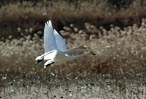 萬里黃河塑造了神奇的黃河三角洲,三角洲上有一個煙波浩渺的人工湖。每到冬天,湖面上一群群潔白的天鵝,或安詳優雅地結伴嬉戲,或溫情脈脈地交頸摩挲,或悠閑自得地以嘴梳理羽毛,或頸扎水中,翩翩跳起"水上芭蕾"。由此,這個人工湖得名"天鵝湖"。