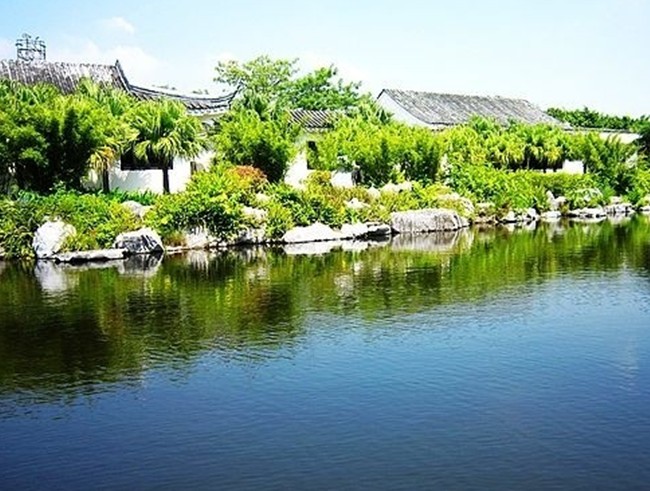 由我國園林名石——廣東英石、江蘇太湖石以1:1000倍比例按廣東嶺南派著名畫家林風俗教授的水墨山水名畫——“天下第一盆景”為藍本放樣砌成。