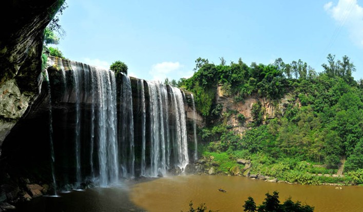 青龍瀑布位于重慶市萬州區甘寧鎮甘寧河。名聞遐邇、享譽中外的“亞洲第一瀑”——青龍瀑布,以它驚天地、泣鬼神的磅礴氣勢和眾星拱月般的奇特景觀與膾炙人口的民間傳說,受到世人矚目。青龍瀑布 山青、水秀、瀑寬、洞奇、潭幽、湖大、虹美。瀑布下面1600平方米的水簾洞能極大豐富您的想象力。7000余平方米的青龍洞中,嘆為觀止的是自然天成的青龍洞“天工畫壁”。青龍瀑布,地杰人靈、山川秀美。版權所有山東聊城聊之旅國際旅行社有限公司,轉載必究!它養育了三國東吳大將軍甘寧,也誕生了蜚聲中外的現代著名詩人、散文家、文學理論家何其芳。目前,青龍瀑布已對外開放。由于青龍瀑布景觀獨特、氣勢恢宏,已成為長江三峽國際旅游線上一顆璀璨的明珠,受到世人青睞。青龍瀑布和黃果樹瀑布已聯姻,聯合打造“中國水文化”旅游產品。青龍瀑布風景區是國家級三峽風景名勝區內重要景區之一,是重慶市級風景名勝區。分5大景區39個景點,5大景區由核心景區青龍瀑布、甘寧湖、白云洞、貫峰書院和逍遙莊組成,集山青、水秀、竹茂、洞奇、潭幽、瀑寬、虹美、湖大、古墓、名人故居于一體。景區內不但有青龍瀑布、青龍洞、青龍潭、水簾洞、青龍河等眾多自然景觀還有出土于此的“戰國包鑼”、“虎鈕淳于”等國家一級文物和三國東吳名將甘寧故里,現代著名文學家、詩人何其芳先生的故居等豐富的人文景觀。