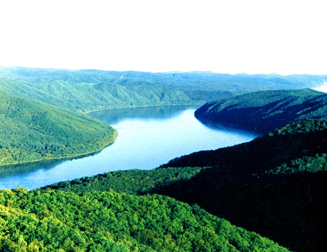 龍江三峽位于黑龍江蘿北段,三個美麗的峽谷分別是龍門峽、金龍峽和金滿峽,全長共62公里。乘著小艇逆江而上,江風夾著濕氣撲面而來,直鉆進人的毛孔里去。放眼望去,只見江水蜿蜒,江流湍急;兩岸山崖峻美,峰巒疊嶂。山環水抱,交相輝映,既有漓江的秀色,也有岷江的磅礴;既有長江三峽的雄奇,又有桂林山水的清雋;山青如繡,水綠如絹,江山如畫,濃彩重墨中透著淡雅,清新豪放中顯得莊重。
