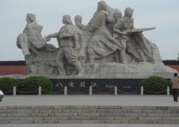 八女投江紀念地位于牡丹江畔的江濱公園。該群雕1988年落成,高13米,長8.8米采用花崗巖石材雕鑿而成,"八女投江"四個大字由全國政協主席鄧穎超生前書寫。站在這碩大的群雕前,無不使人思維翻滾,心潮澎湃,當年八女視死如歸,英勇戰斗的情景又呈現在人們的面前,1938年10月下旬,東北抗聯四、五軍西征婦女團,在指導員冷云帶領下,擔負著掩護大部隊轉移的任務,她們英勇抗擊日軍熊谷部隊的襲擊,在彈盡糧絕的情況下,寧死不屈,最后毅然背著負傷的戰友,投入林口縣境內的兇猛暴烈冰冷刺骨的烏斯渾河,為國捐軀,譜寫了一篇驚天地,泣鬼神的抗日史詩。電影《中華兒女》、《八女投江》都是根據她們的事跡拍攝的。1982年10月在林口烏斯渾河畔 建起了"八女投江紀念碑",上題"八女英烈光照千秋"八個大字,它背負蒼山,河水縈繞,其志銘記述了冷云、楊貴珍、安順福、胡秀芝、郭桂琴、黃桂清、王惠民和李風善八位巾幗的英雄業績。1984年被國家列為二級文物保護單位。牡丹江市江濱公園的八女投江群雕也被批準為省級愛國主義教育基地。1984年籌建,時任全國政協主席鄧穎超為群雕題寫了“八女投江”四個大字。1986年9月7日舉行工程奠基儀式,1988年8月1日落成。時任全國政協副主席、全國婦聯主席的康克清參加了奠基及落成典禮。群雕工程總造價424萬元。其中:民政部撥款73萬元,財政部撥款50萬元,國家城雕組出資16萬元,市財政撥款35萬元,全市人民捐款250萬元。石雕群像由中央美術學院雕塑系設計,四川美術學院雕刻,版權所有山東聊城聊之旅國際旅行社有限公司,轉載必究!四川美院雕塑廠、牡市第三建筑工程公司等20個單位負責底座、雕像、紀念館和廣場的施工任務。群雕坐南朝北,占地面積8 000平方米,高8.8米,長18米,寬6.9米,由花崗巖石雕塑而成。群雕南側建有牡丹江烈士紀念館,陳列面積160平方米,采用單層半地下式建筑。北墻兩側設門,正中在漢白玉石上鐫刻著中共牡丹江市委員會、市人民政府題撰的“八英烈女銘志”。展廳陳列有康克清1986年題詞“八女英靈永存史冊”,王震1990年8月4日題詞“向抗日烈士致敬”,還有周保中、李延祿等人題詩。展廳里展出了八位女烈士的生平簡介、圖片和部份烈士遺物,為全國重點烈士紀念建筑物保護單位和省級愛國主義教育基地。