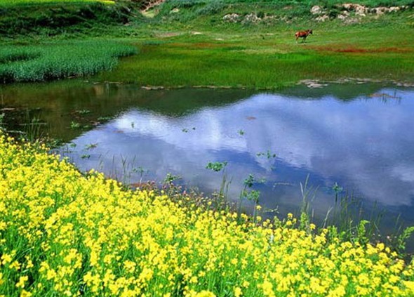 于甘肅夏河縣城西南1公里處,是??凄l(xiāng)達久灘(“跑馬灘”之意)草原的一部分,為四周群山環(huán)抱,中間開闊平坦的高山草原。??撇菰写笙暮铀畯哪系奖毙煨炝鬟^,水草豐茂,風景優(yōu)雅,藍天白云下牛羊成群,一派自然田園風光。??撇菰瓪v史為藏科人民的天然牧場。 每到夏季,草場碧綠姨毯,各色花卉爭奇斗艷,絢麗多彩,天高氣爽,是草原旅游、避暑和體驗藏族旅游牧生活、回歸自然的理想旅游場所。