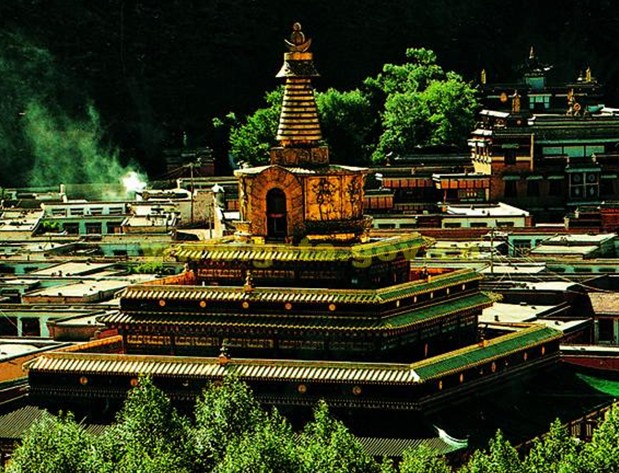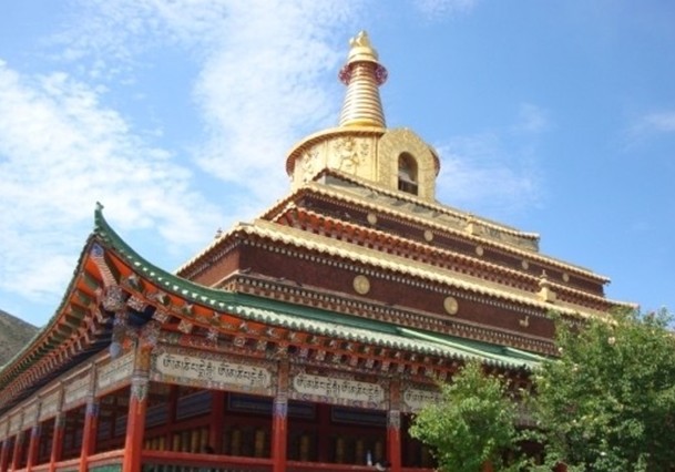 拉卜楞寺西南角,由三世貢唐倉(cāng)•貢曲乎丹貝仲美大師建成于1805年,原名現(xiàn)見解脫大金塔,因塔內(nèi)供有從尼泊爾迎請(qǐng)來的無量光佛(阿彌陀佛)像而享譽(yù)海內(nèi)外,寶塔造型別致,工藝精巧,在建筑藝術(shù)與宗教意義上達(dá)到了完美神圣之境界。現(xiàn)存寶塔由六世貢唐倉(cāng)•丹貝旺旭大師為丕振宗風(fēng),宏教利民,而于1991年2月8日在原寶塔遺址舉行凈地儀軌,主持籌建。工程竣工于1993年7月,于佛祖釋迦牟尼初轉(zhuǎn)法輪的殊勝節(jié)日舉行了開光永存儀式。貢唐寶塔高五層,31.33米,塔呈菩提式,版權(quán)所有山東聊城聊之旅國(guó)際旅行社有限公司,轉(zhuǎn)載必究!占地2144.16平方米,由塔剎、塔瓶和塔座組成。塔剎是日、月、星辰;塔瓶是精銅浮雕鎏金八大菩薩;塔座是琉璃瓦裝飾的三層四角形建筑。寶塔外形金碧輝煌,氣勢(shì)非凡,內(nèi)部構(gòu)造精巧,多寶嚴(yán)飾。塔內(nèi)正中是二層相互貫通的四座佛殿,供歷世貢唐倉(cāng)靈塔或木雕鍍金像,并藏有兩萬余卷佛經(jīng)。殿頂供阿彌陀佛、二世嘉木樣和千佛銅像。貢唐寶塔與大夏河水、云杉禪林相映,矗然傲立,巍峨壯觀,現(xiàn)已對(duì)游人開放。