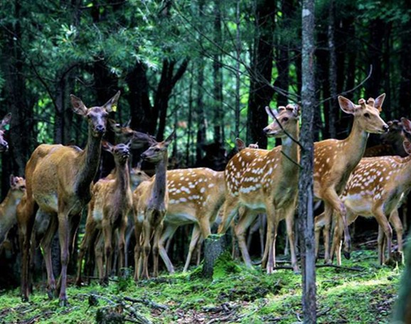 金山鹿苑位于小鎮東南方向5千米處,群山環繞,景色怡人,鹿場采取半開放式,幾百頭馬鹿,天山馬鹿和梅花鹿在山泉邊嬉戲,大密林中徜徉,常年集山川大地之靈氣,蓄花草樹木之精華,與野生鹿并無二致。產品鹿胎膏,鹿心血,鹿鞭,鹿尾等都是上好的藥材和補品。金山鹿苑位于金山屯區,占地56公頃,腹地是大半個山頭,山間有草坪、柞樹、溪流。