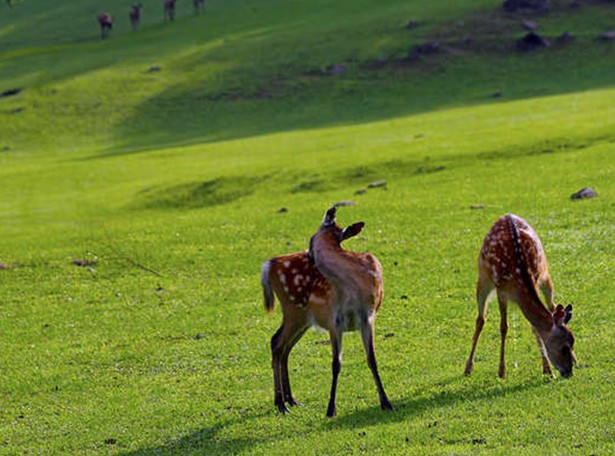 金山鹿苑位于小鎮東南方向5千米處,群山環繞,景色怡人,鹿場采取半開放式,幾百頭馬鹿,天山馬鹿和梅花鹿在山泉邊嬉戲,大密林中徜徉,常年集山川大地之靈氣,蓄花草樹木之精華,與野生鹿并無二致。產品鹿胎膏,鹿心血,鹿鞭,鹿尾等都是上好的藥材和補品。金山鹿苑位于金山屯區,占地56公頃,腹地是大半個山頭,山間有草坪、柞樹、溪流。由于這里生態條件適宜,經常有野生鹿出沒。金山屯區依托這一資源,在此建立了養殖場。采取半開放式放養,養殖的鹿種有天山馬鹿、梅花鹿等,是一個集養殖、鹿產品加工和銷于一體的鹿產品繁育基地。開發的鹿胎膏,鹿心血、鹿鞭、鹿尾等都是上好的藥材和補品。近年來,隨著鹿產品加工工藝的加強,版權所有山東聊城聊之旅國際旅行社有限公司,轉載必究!這里采用了紅線帶血加工新工藝,使鹿茸的有效成份不受損失,獲得國家和省、市有關部門的獎勵。目前,金山鹿苑已建成為在省內外知名的生態觀光旅游區。
