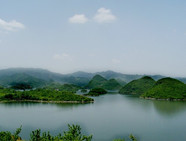 百花湖畔,清鎮(zhèn)市第二高峰云歸山,自東向西環(huán)抱鄉(xiāng)境,支脈延伸,千姿百態(tài),青翠秀麗。丘陵、槽谷、山地、水域連為一體,形成一個生態(tài)大板塊。云歸山居清鎮(zhèn)市八景之首,“爐嶺歸云”高聳入云,極目百里,昕夕云集。云歸林區(qū)、九里箐,方圓七十余里,原生植被,物種繁多,森林茂密,鳥語花香,山谷幽深,清泉汩汩。石操、上麥城、下麥城、溫水、哪嘎、盤龍洞等林場構(gòu)成道道生態(tài)屏障。為打造“森林生態(tài)”文化,相繼實施長江防護林、天然林資源保護、退耕還林還草、沿湖綠化工程,森林面積從“九五”末的8.89萬畝增加到2006年的9.63萬畝,森林覆蓋率提高到60%。林密、地綠、山青、水秀使百花湖鄉(xiāng)成為名副其實的避暑勝地、“天然大氧吧”。綠色農(nóng)業(yè)、生態(tài)農(nóng)業(yè)成為調(diào)整產(chǎn)業(yè)結(jié)構(gòu)的主攻方向,十里杜鵑、十里櫻桃、百畝李子、千畝高產(chǎn)油菜、百畝烤煙、百萬只肉雞飼養(yǎng)、無公害茶樹菇等基地初見成效,促進了農(nóng)民增收,版權(quán)所有山東聊城聊之旅國際旅行社有限公司,轉(zhuǎn)載必究!2006年農(nóng)民人均純收入2877元。蘿卜、云歸、三屯一帶十里峽谷盛產(chǎn)櫻桃,杜鵑遍山,獨具“春到三月意更濃,云歸十里櫻桃紅。杜鵑滿山織云錦,農(nóng)家年年坐春風(fēng)”的詩情畫意。“品云歸櫻桃,賞十里杜鵑、烤百花鮮魚”,是百花湖旅游的獨特享受。境內(nèi)三季有果、四季有花,生機盎然,漫步山間田野,賞花品果,其樂無窮。 百花湖鄉(xiāng)境內(nèi)河流眾多,水資源豐富。上世紀(jì)60年代因建百花電站形成的百花湖,與紅楓湖并稱“姊妹明珠”。蓄水2.1億立方米,水面14.5平方公里,92%在百花鄉(xiāng)境內(nèi)。如今湖面如鏡、影映青山、振翅小島、層層梯田、點點農(nóng)舍、縷縷炊煙,一派田園風(fēng)光,成為休閑避暑、度假觀光的旅游勝地。百余個峰叢島嶼靜臥水中,迎客松、石鏈鎖猴、青蛙聽濤、小三峽、嬌燕戲水、八仙過海、筆峰疊翠等自然景觀千姿百態(tài)。百花湖沿岸,三屯五堡之間,百花山莊、百花游樂園、明月樓、觀云樓、靈達(dá)度假村、星苑等一幢幢旅游建筑拔地而起,集會議、休閑、餐飲、娛樂、觀光為一體。著名作家金庸星苑登樓觀景,欣然贊曰“如此湖山天下無,天然勝景百花湖”。