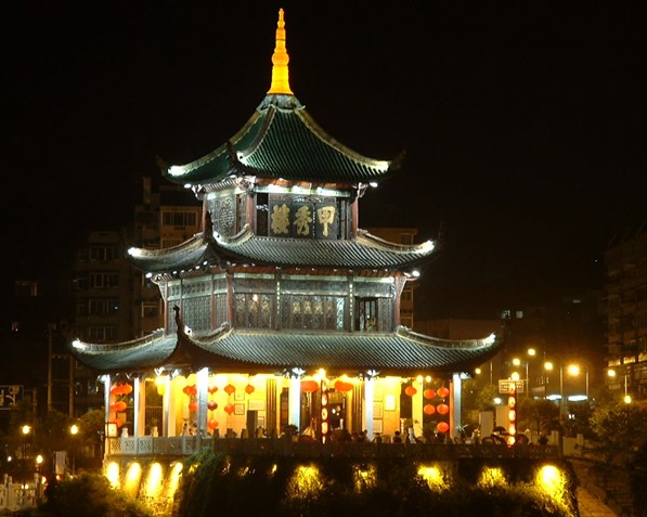【1】甲秀樓,中國古代名樓,坐落在中國貴州省貴陽市城南的南明河上,以河中一塊巨石為基而建。始建于明,后樓毀重建,改名“來鳳閣”。清代多次重修,并恢復(fù)原名。甲秀樓建在城南涵碧潭鰲磯石上。從古到今,甲秀樓歷經(jīng)六次大規(guī)模的修葺和400年的風(fēng)吹雨打,依然矗立不倒,見證了筑城400年歷史。