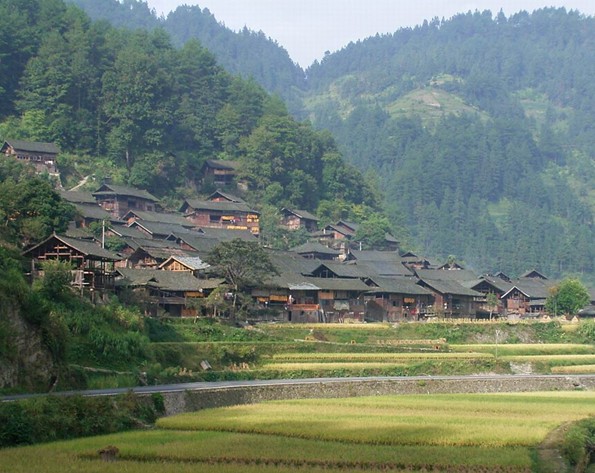 朗德上寨,屬貴州省黔東南苗族侗族自治州雷山縣報德鄉,是一個苗族村寨,距凱里市區29公里,距縣政府雷山7公里,是貴州省東線民族風情游的重點村寨之一。這是一個有百戶人家的苗族村寨。郎德上寨系苗語“能兌昂糾”的意譯,“能兌”即歐兌河下游之意,村以河名,“昂糾”即上寨,郎德上寨因屬郎德地片上方,故名。寨內苗民的服飾以長裙為特征,所以又稱為“長裙苗”。