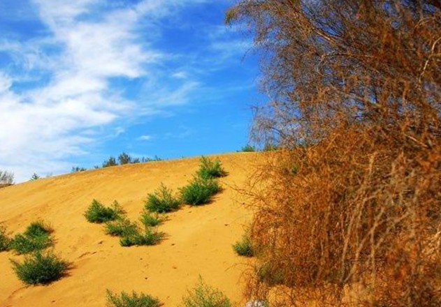 沙漠內部絕大部分為固定和半固定沙丘,其面積占整個沙漠面積的97%。形成中國面積最大的固定、半固定沙漠。固定沙丘上植被覆蓋度40—50%,半固定沙丘達15—25%,為亞洲中部灌木漠的主要部分,是優良的冬季牧場。版權所有山東聊城聊之旅國際旅行社有限公司,轉載必究!再加上埋藏的古沖積平原和古河湖平原,沉積有巨厚的第四紀松散沉積,賦存著淡承壓水,使古爾班通古特雖有沙漠之名,但也是生機盎然,生存的植物多達300種以上。