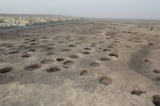 哈密五堡墓地位于新疆哈密市五堡鄉(xiāng)政府西北2公里。南距五堡水庫約1公里。距今約3000余年,青銅時代文化遺存。為原始社會晚期階段的氏族公社墓地。海拔525米。地理坐標(biāo):東經(jīng)92°49′14″,北緯43°1′52″,1990年被列為新疆維吾爾自治區(qū)文物保護(hù)單位。1978、1986和1991年,新疆文物考古研究所會同哈密地區(qū)文物管理所進(jìn)行的三次考古發(fā)掘,共清理墓葬113座。哈密五堡墓地墓區(qū)內(nèi)墓葬十分密集,鱗次櫛比,排列有序。地表近平,不見封堆。哈密五堡墓地墓葬均為長方形豎穴土壙墓,一般長1.5米,寬1米左右,深1.2~2米。近哈密五堡墓地墓室底部有生土或土坯二層臺,高約0.5米,寬約0.2米。二層臺上鋪弧形蓋木,蓋木大多為胡楊,版權(quán)所有山東聊城聊之旅國際旅行社有限公司,轉(zhuǎn)載必究!蓋木彼此切合不密,只稍事砍削,相對平整。蓋木下即為哈密五堡墓地墓室,一般長1.1米,寬0.8米左右。哈密五堡墓地墓室內(nèi)大都葬一人,均側(cè)身曲肢,雙腿極度曲卷。