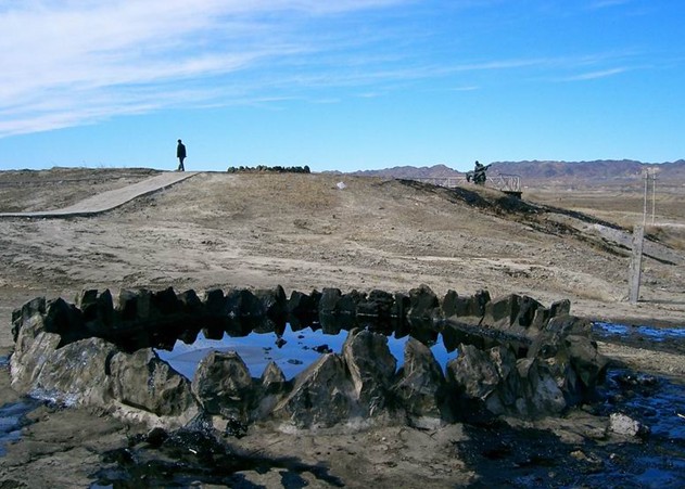 黑油山位于克拉瑪依東北部,距市中心兩公里多,是油田重要油苗露頭的地方,因原油長(zhǎng)年外溢結(jié)成一群瀝青丘,最大的一個(gè)高13米,面積0.2平方公里,油質(zhì)為珍貴低凝油。"克拉瑪依” 維吾爾語(yǔ)為“黑油”,故這個(gè)天然石油瀝青丘且得名黑油山。這座黑色的瀝青山以及它地下埋藏的石油在這里已沉睡上億年。由于地殼變動(dòng),巖石產(chǎn)生斷裂破碎,地下石油受地層壓力影響,巖石裂隙不斷向地表滲出。