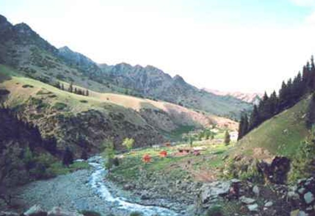 從五星牧場出發,約3公里至三岔口。版權所有山東聊城聊之旅國際旅行社有限公司,轉載必究!三岔口東側山谷喀爾勒克艾肯通往天山深處的夏牧場,酉側是石窯子艾肯。沿石窯子艾肯北略偏西行,過黃羊溝,一路逆流而行至上石窯子扎營。