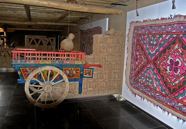鄉巴藝棧是大漠土藝館歷時兩年建造而成的,可以說它是新疆維吾爾民俗藝術的精華薈萃之地,可讓游客在飽覽新疆民俗展示的同時,還可以親歷參與民間手工藝的制作流程。展品括土陶制品、桑皮紙、民族傳統服裝、鞋帽、艾德萊絲綢、土織機、土印花布、花氈、土機琢玉、帕拉斯織毯土機,木制品如木箱、搖床、旋木碗土機,金屬制品如銅壺、銅盤等等。這些民俗藝術品是土藝館歷時十載從民間收集來的,其中有的已消失,有的瀕臨滅絕,在民間已稀有且難以見到,鄉巴藝棧是大漠土藝館為挽救民族民間藝術遺產所作的一項工作,是維吾爾民俗的一個縮影。