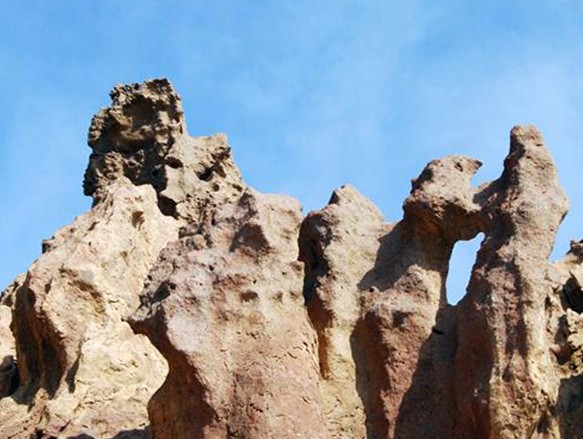 盤吉爾怪石林位于新疆維吾爾自治區(qū)托克遜縣克爾堿鎮(zhèn)境內(nèi)的盤吉爾塔格山山脊和山坡上,平均海拔1200米。東南距托克遜縣城55公里,距克爾堿鎮(zhèn)10公里。是由溶蝕和風(fēng)蝕作用形成的峰林地貌,被稱為“盤吉爾塔格”。 “盤吉爾塔格”維吾爾語(yǔ)意為“像多孔窗子的山”。石林單體構(gòu)造一般為2~5米,大型的高度達(dá)十幾米,總面積約1平方公里。巖體多為石炭紀(jì)火山巖和角礫凝灰?guī)r,呈青灰或褐紅色,巖石中含豐富的碳酸鈣。盤吉爾怪石林是迄今中國(guó)國(guó)內(nèi)發(fā)現(xiàn)的惟一的火成巖風(fēng)蝕石林區(qū),品味高,形態(tài)完整,是神奇的風(fēng)蝕地貌自然博物館。
