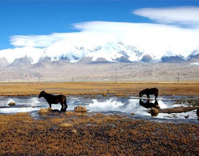 和田河是唯一從塔克拉瑪干沙漠腹地穿過的河流,全長1127公里,其上游由兩條支流構(gòu)成,一條是玉龍喀什河,一條是喀拉喀什河,均發(fā)源于昆侖山,兩河在闊什拉什匯合后始稱和田河,和田河下游為典型的平原游蕩型河流,河床寬淺,河流曲折婉蜒,多心灘、邊灘,以灰楊、胡楊為主的天然林沿河兩岸呈帶狀分布,野生動(dòng)物時(shí)常出沒。