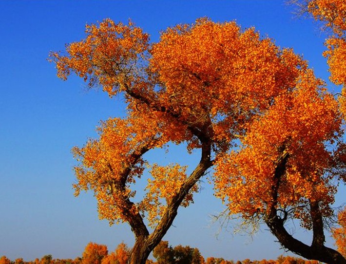 在我國(guó)巴音郭楞自治州最長(zhǎng)的內(nèi)陸河塔里木河,分布著世界唯一的最大原始胡楊森林公園保護(hù)區(qū),全世界胡楊林有百分之十在中國(guó),而中國(guó)的胡楊林有百分之九十在新疆塔里木河畔。它的祖先遠(yuǎn)在一億三千五百萬(wàn)年前早就出現(xiàn)了,被地質(zhì)學(xué)家稱為“第三世紀(jì)活化石”是世界上最古老的一種楊樹(shù)。