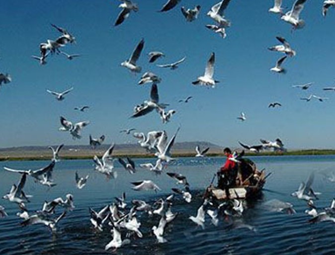 又名“布倫托海”,“福海”。位于準噶爾盆地北部,福海縣城西北。“布倫托”,突厥語意為“灌木叢生”。這是新疆僅次于博斯騰湖的第二大漁業(yè)基地。由面積 165平方公里的吉力湖(小海子)和面積 730平方公里的烏倫古湖兩個水域組成。發(fā)源于阿爾泰山的烏倫古河流入其中,為該湖主要水源。湖水平均深度為八米,北岸斷崖,與額爾齊斯河僅距2.1公里,湖盆是由斷層陷落而形成的。烏倫古湖素以“戈壁大海”和鮮美“福海魚”而著稱。從克拉瑪依市出發(fā),沿公路去阿勒泰市,烏倫古湖是必經之地。湖區(qū)水質肥沃,浮游生物豐富,有浮游植物75種,浮游動物10多種,水生維管束植物6種,底棲生物亦多,大、小湖均屬于營養(yǎng)型湖泊。主要經濟魚類有:貝加爾雅羅魚、河鱸、斜齒鳊、東方真鳊、圓腹雅羅魚、銀鯽、丁卡等,以前4種產量居多。平均年產量約3000噸,最多年4500噸,占新疆魚產總量1/3以上。由于湖面水位下降,湖濱的沼澤面積逐漸減少,蘆葦產量和質量均下降;1972年沼澤面積已減少22平方公里,蘆葦高度由2~4米變?yōu)楝F(xiàn)在的0.5~1米。同時,沙堤、沙灘面積卻日漸增加。1960年以前大湖未見沙堤,1972年沙堤斷續(xù)露出水面。1980年沙堤已連續(xù),寬約400米,最高處露出水面2米。 大湖東部駱駝脖子出口處變窄變淺,正向潟湖方向發(fā)展。從環(huán)境條件看,烏倫古湖可從近20多年的惡性循環(huán)轉向今后的良性循環(huán),主要措施是從額爾齊斯河增加引水量,并從烏倫古河揚水灌溉湖周草地及湖西南地區(qū)。這樣不僅湖水位可回復,湖水加速循環(huán)后亦可淡化。從額爾齊斯河引水的規(guī)劃工作正在進行。