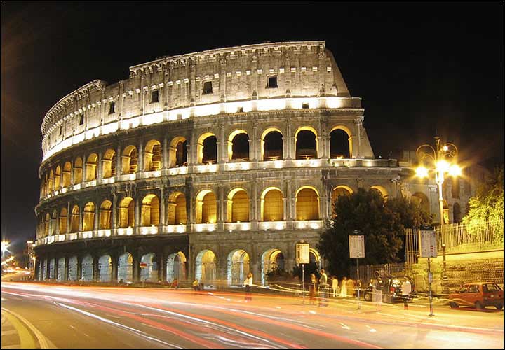 羅馬斗獸場,亦譯作羅馬大角斗場、羅馬競技場、羅馬圓形競技場、科洛西姆、哥羅塞姆,原名弗萊文圓形劇場(Amphitheatrum Flavium),建于公元72至82年間,是古羅馬文明的象征。遺址位于意大利首都羅馬市中心,它在威尼斯廣場的南面,古羅馬市場附近。從外觀上看,它呈正圓形;俯瞰時,它是橢圓形的。它的占地面積約2萬平方米,最大直徑為188米,小直徑為156米,圓周長527米,圍墻高57米,這座龐大的建筑可以容納近九萬人數的觀眾。