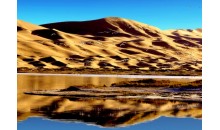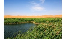 騰格里沙漠月亮湖旅游區 位于中國內蒙古阿拉善盟境內騰格里沙漠腹地,月亮湖是距離國內各大城市半徑最短的沙漠探險營地,是現代都市人尋求緊張競爭生活之外的驚險刺激與徹底放松身心的最佳游程。月亮湖有三個獨特之處:一是形狀酷似中國地圖:站在高處沙丘一看,一幅完整的中國地圖展現在眼前,蘆葦的分布更是將各省區一一標明;二是湖水天然藥浴配方:面積三平方公里的湖水,富含鉀鹽、錳鹽、少量硭硝、天然蘇打、天然堿、氧化鐵及其它微量元素,與國際保健機構推薦藥浴配方極其相似。