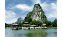 廣東肇慶市的星湖風景名勝區,是中國南方著名的旅游勝地。很多游人對它評價很高,認為它兼有杭州西湖和廣西桂林的勝景。星湖位于肇慶市北郊4公里處,湖面約8000畝,大小和西湖相近。整個湖面被蜿蜒交錯的湖堤劃分為五個湖:東湖、青蓮湖、中心湖、波海湖、里湖。湖堤總長20余公里,堤上楊柳、鳳凰木成行,宛如幾條綠色帶子飄落在碧澄的水面上。
