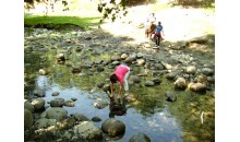 三疊泉是珠海橫琴島上的名泉,泉水自市區最高峰腦背山(458米)由上而下疊成的瀑布——大狹瀑——飛凌瀑——隱靈瀑飛流直下而得名,山澗有許多的清澈的溪泉,山腳下更有可以暢飲的山泉泳場,它一鵝卵石砌岸鋪底、泉水自進自去、活水泳場清爽暢快。并有一個1.5萬平方米的大型沙灘泉水泳場,泉水有兩種水溫,上暖下涼,這就是最獨特之處。