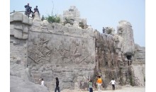 大觀峰是山東泰安的著名風景名勝之一,位于玉皇頂盤路東側,大觀峰削崖為碑,布滿了歷代題勒,其中最著名的是唐玄宗于開元十三年(725)登封泰山時御制御書的《紀泰山銘》,俗稱“唐摩崖”。摩崖高13.3米,寬5.5米,全文1000字,書體為唐隸。文辭典雅,書法遒勁,頗具盛唐風格。明代文學家王世貞評價說:“穹崖造天銘書,若鸞飛舞于煙云之表,為之色飛。”