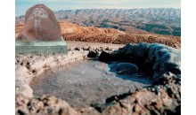克拉瑪依泥火山位于獨山子北部的一個山峰上,主要有兩個噴出口兩者相距約100余米,較大的一個噴口直徑約60厘米,高出地面1米余。噴口內是粘稠的泥漿,泥漿呈灰綠色,略帶油氣味,不停的向外翻泥泡,匯集的泥漿沿西南側的開口外溢。涌出的泥流在地表形成錐型丘,底部直徑在10米以上,表面是干裂的泥漿塊。泥火山所在的獨山子亦很有特色,該山的南北長約7千米,東西寬約6千米,最高峰1283米,孤立的突兀于傾斜平原之上。