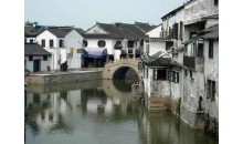 史載于1086年的古鎮周莊,位于上海、蘇州、杭州之間。鎮為澤國,四面環水,咫尺往來,皆須舟楫。全鎮依河成街,橋街相連,深宅大院,重脊高檐,河埠廊坊,過街騎樓,穿竹石欄,臨河水閣,一派古樸幽靜,是江南典型的小橋流水人家。