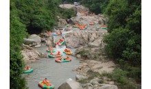 臺山北峰山漂流位于古兜山省級自然保護區內,省級森林公園原始峽谷之中,漂流河段全程4公里,需時1時20分鐘。自然保護區內茂密的原始森林和天然峽谷賦予北峰山漂流與眾不同的特色,集瀑布、深潭、奇石、密林、珍稀動植物、沙灘于一身,在全省獨樹一幟,自然景色之美令人為之驚嘆。全程80多米的落差,密林之下,瀑布飛舟,在峽谷中穿石繞壁,凌波逐浪,融逍遙漂與勇士漂于一體。