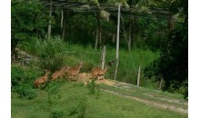 海榆公路中線111公里處,屯昌縣木色木庫三面臨水的半島上,便是目前中國南方最大的綜合性養鹿場之 一——楓木鹿場。   該場占地380多畝,60年代建成,至今已有700多只坡鹿、水鹿、馬鹿、梅花鹿、糜鹿、黃鹿嬉戲在椰林搖翠、芳草如茵的樂土上。這里,美麗的湖水,綠色的原野,設計奇妙的建筑,加上已經馴化、可人心意的鹿群,構成美妙有趣的童話世界。