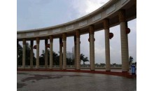 湛江海濱公園位于霞山區東北角海濱,這里有細白的沙灘、湛藍的海水、挺拔的椰樹,如茵的芳草,鮮艷的花卉。富有亞熱帶海洋風光,被稱為湛江的“城市客廳”。時代廣場就是公園的大門。大門為歐式建筑風格,由二十根圓柱頂起一弧形柱廊,上方鑲嵌著九幅漢白玉浮雕,浮雕描繪了湛江百年歷史,廣場地面用紅、褐、灰三色馬賽克拚成一幅世界地圖。