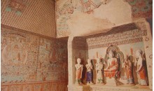 “炳靈”,是藏語“十萬佛”的音譯,意譯相當于漢語的“千佛山”、“萬佛洞”。炳靈寺石窟的正式營建始于西秦建弘元年(420年),后歷經北魏、北周、隋、唐,不斷進行開鑿修造,元明時期仍有修妝繪飾。現存窟龕183個,共計石雕造像694身,泥塑82身,壁畫約900平方米,分布在大寺溝西岸長約200米,高60米的崖面上。石窟以位于懸崖高處的唐代“自然大佛”(169窟)以及崖面中段的眾多中小型窟龕構成其主體。