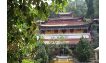 梨花塢又名大梨園,塢中建有同名寺院,主建筑慈云閣層樓高聳,飛檐翼然,古樸莊嚴(yán),為大慈大悲觀世音菩薩安享人間香火之所;附屬建筑藏經(jīng)樓、讀畫樓、醉月樓、菩提樓、養(yǎng)云池、雨花亭、瑞雪嶺等亭臺樓閣皆依山構(gòu)筑,錯落有致而又此呼彼應(yīng)地構(gòu)成一個嚴(yán)整的建筑群體。寺前一彎山溪如吟似奏